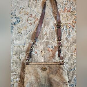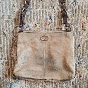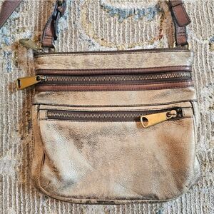 FOSSIL Purse Explorer "Antiqued" Gold Leather Crossbody, excellent condition