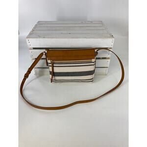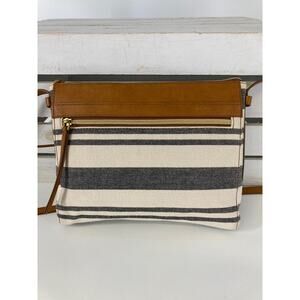 FOSSIL SMALL NAVY AND OATMEAL STRIPED CANVAS CROSSBODY BAG