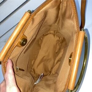 CROSSBODY STRAP HAS SOME CRACKING AT BASE WHERE IT CONNECTS TO PURSE. SEE PHOTOS. ASIS
