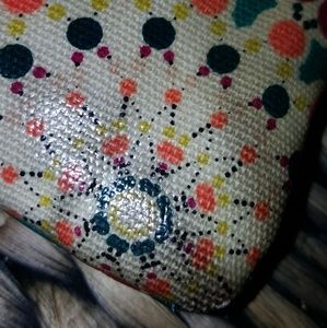 MANDALA PATTERN AND BRIGHT TEAL WITH POPS OF ORANGE AND RED, THIS WRISTLET HAS BEEN LOVED, BUT HAS PLENTY MORE LIFE LEFT.