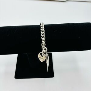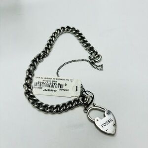Details: Fossil chain bracelet heart charm bracelet with a similar to a lock & key closure