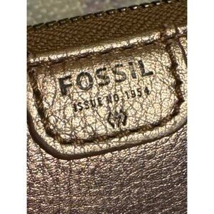 FOSSIL Soft Metallic Rose Gold Leather Zip Long Wallet Cardholder