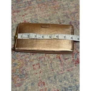 FOSSIL Soft Metallic Rose Gold Leather Zip Clutch Long Wallet Cardholder