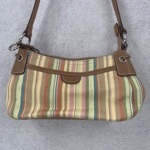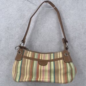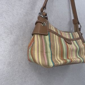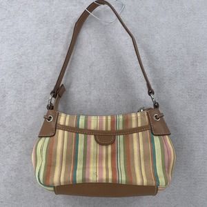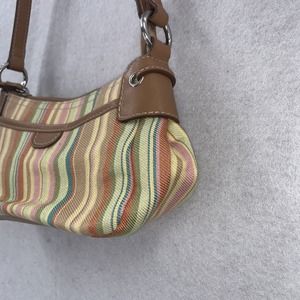 FOSSIL Striped Multi Color Fabric Purse Shoulder HandBag Tote Small.