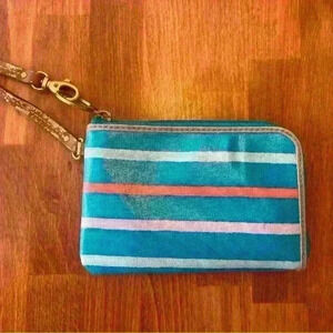 FOSSIL Striped Wristlet Wallet PVC Coated Canvas Zip Around