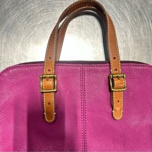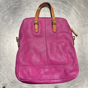 FOSSIL TAYLOR MAGENTA PURPLE+BROWN TRIM LEATHER CROSSBODY,TOTE,HAND BAG