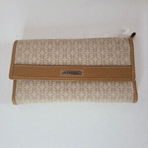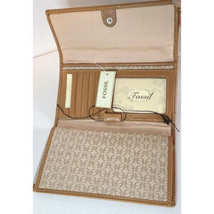 * FOSSIL TRIFOLD SIGNATURE CLUTCH FABRIC LEATHER WALLET EXTERIOR POCKET