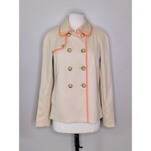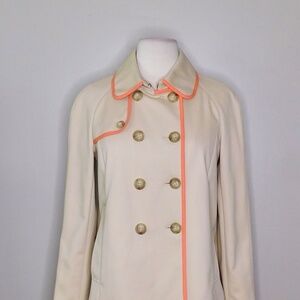 FOSSIL Tan Double Breasted Swingy Twill Pea Coat Jacket Tan & Coral Pink Small