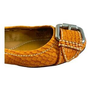 FOSSIL VINTAGE Reptile Embossed Rust Color Leather Flats silver-tone Buckle Top
