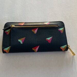 FOSSIL Vday Zip Clutch Hearst Zip Around Black Wallet. NWT