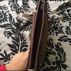 Pre-loved but in excellent condition. Part of the all-time favorite collection from 2012. With a timeless design and refined hardware, it only gets more covetable as the years go by. Has front flap pocket with turn-lock closure which shown practically no wear. Back shows a bit of jean transfer marks. Antique gold tone hardware. Fully lined. Zip and two media pockets inside. Very clean. L 10.5" H 8" W 1 3/4". Style ZB5445