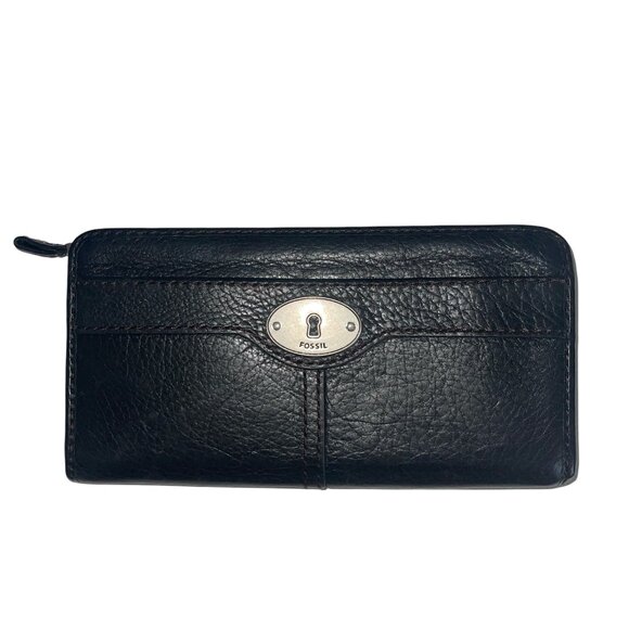 This Fossil black leather wallet features a classic design with a stylish metal lock detail on the front. Compact yet functional, it offers multiple compartments for cards, cash, and coins, making it perfect for everyday use. Please note there is a small stain inside the wallet, but it does not impact its functionality. Overall, the wallet is in good pre-loved condition and ready for a new home. #fashion #trend #style