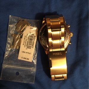 Gold fossil watch. Never worn. No scratches!! Still has sticker on back of it