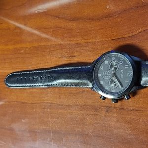 Mens Black All Stainless Steele Fossil Watch With Genuine Leather Adjustable Band Water Resistant 5 ATM
