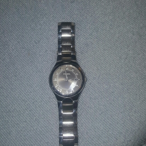 Fossil watch. Mens. Stainless steel. Gray face. Water resistant. Needs battery. Some scuff marks. Gently worn.