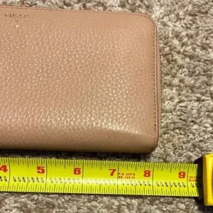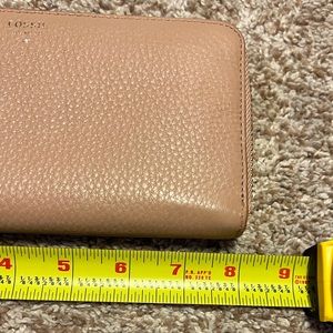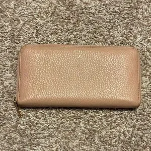 Very gently used Fossil wallet! Super soft pebble leather in a salmon-y pink color with gold accents.