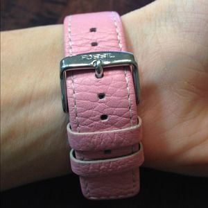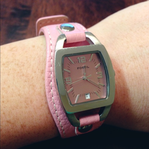 This precious pink genuine leather band watch is perfect for you :) It is barely used! •genuine leather •stainless steel •FOSSIL •new battery •pink band and face