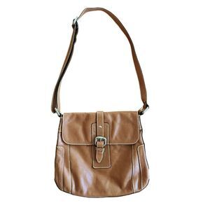 FOSSIL Womens Explorer Messenger Brown Distressed Leather Medium Fold Over Bag