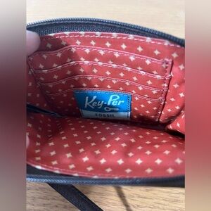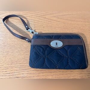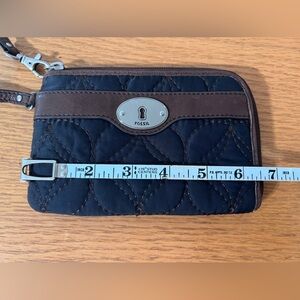 FOSSIL Women's Key Per Black Quilted Nylon Leather Zip Around Clutch Wallet