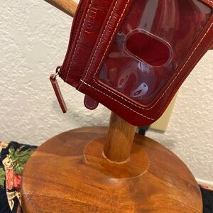 FOSSIL Women’s Leather “Patchwork Zip Coin Purse/ID Keychain” 3x4.5” Red NWOT