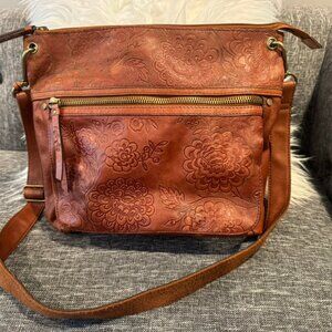 This Fossil bag is in excellent condition. See the embroidered flowers has all the stitching intact.