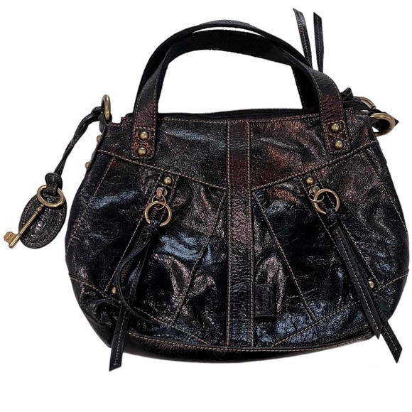 FOSSIL Y2K Genuine Leather Black Metallic Shoulder Bag