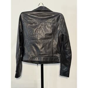FOSSIL ZIP FRONT MOTORCYCLE JACKET - BLACK LEATHER WOMENS S