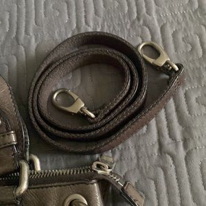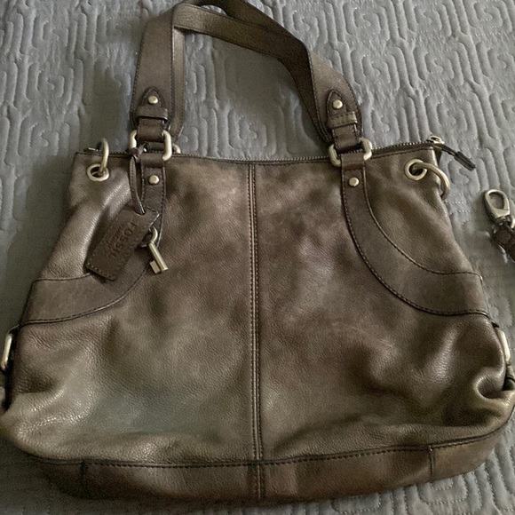 Cute fossil bag with signs of wear (pictured) also some bluish discoloration but still shows beautifully, comes with crossbody strap