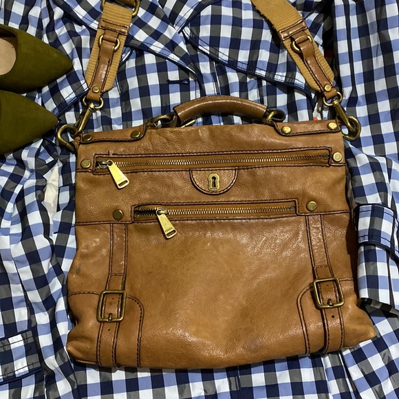 Camel color leather bag.