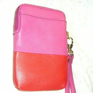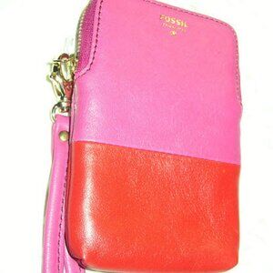 FOSSIL ~ fuchsia pink & red leather wristlet ~ new