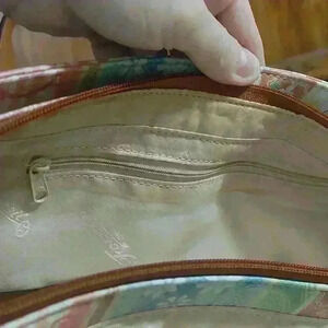 Great condition! Zipper pocket on one side,2 pockets. Has divided interior with large open side. Leather. Heavy duty leather straps and hardware all intact. Note minor stain on large side and watermark on strap. Width 13" Height 6.5" Depth 3".