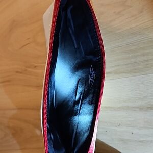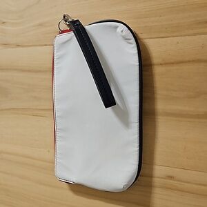 10x6". white, Red, black wristlet in great condition.