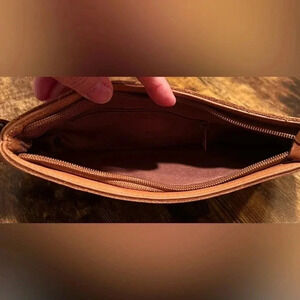 Womens bag, circa 2004, Journey patchwork by Fossil. Honey brown leather. Brass hardware. Full top zip closure. Patchwork patterns on the front with studs (studded). Soft leather. 1/4” wide, 5.5” long wristband. Brand new. Never used. NWOT.