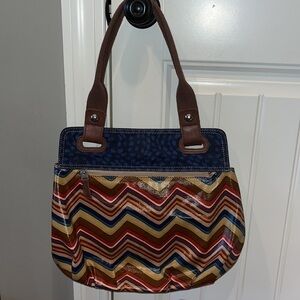 FOSSIL large colorful zig zag wavy key-per bag waxed canvas no charm