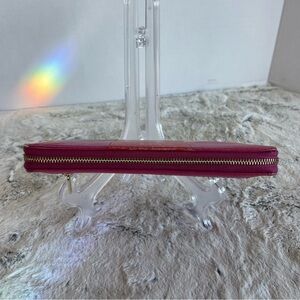 FOSSIL red maroon cream and hot pink zip around clutch wallet