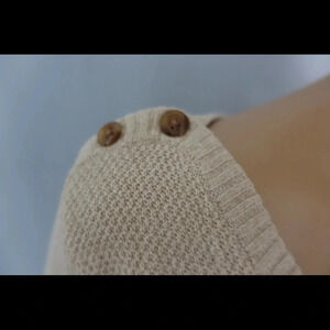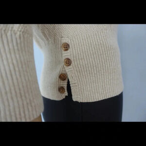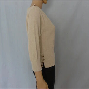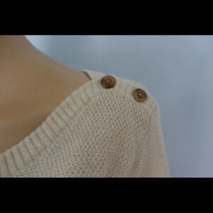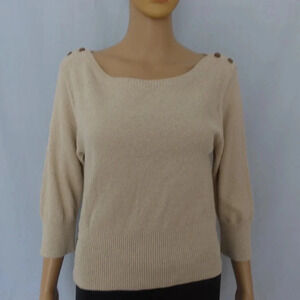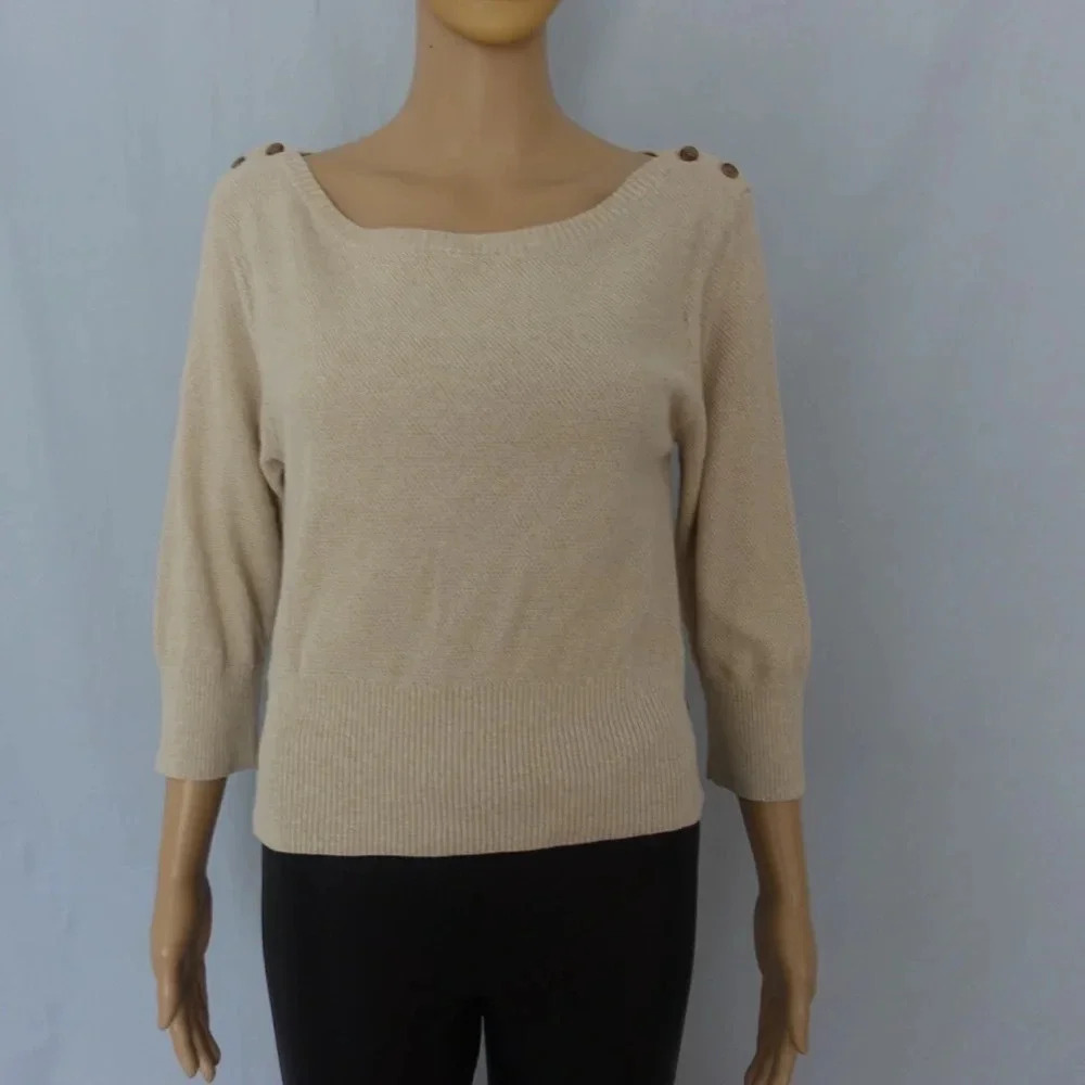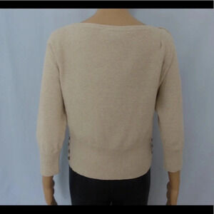 Good condition cardigan 3/4 sleeve. Boatneck buttons on each shoulder and 4 buttons on sides.