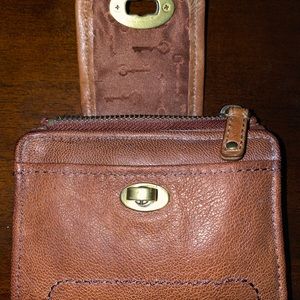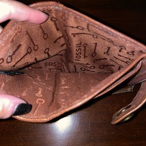 Fossil brown leather wallet with many slots for card, cash, and change!