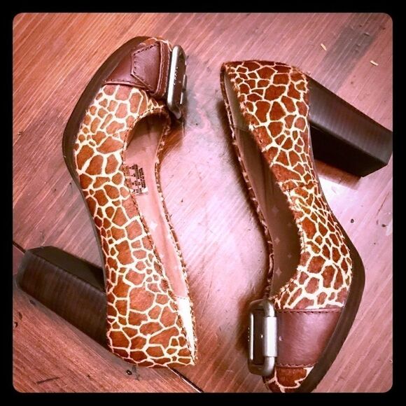 FOSSIL 4” GIRAFFE PRINT HEELS / MADDOX STACK PUMPS