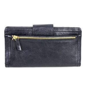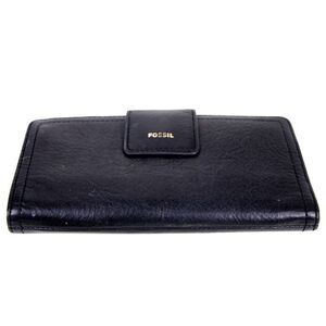 FOSSIL BLACK GENUINE LEATHER ID CARD COIN HOLDER BILL BIFOLD WALLET PURSE