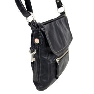 FOSSIL BLACK GENUINE LEATHER KEY CHAIN X-BODY MESSENGER SHOULDER BAG HANDBAG PURSE