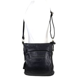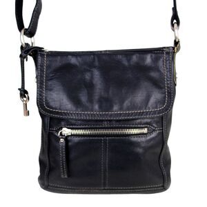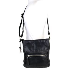 FOSSIL BLACK GENUINE LEATHER KEY CHAIN X-BODY MESSENGER SHOULDER BAG HANDBAG