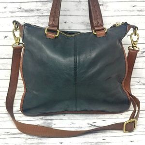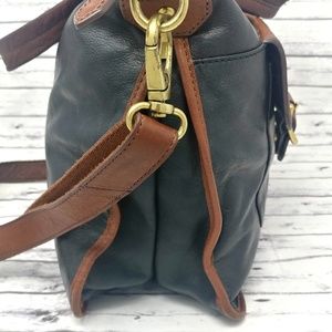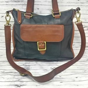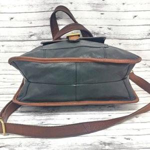 FOSSIL-Black & Brown Pebbled Leather Messenger Bag
