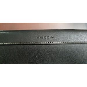 FOSSIL Genuine Black Leather TIE TRAVEL CASE Tie Keeper Organizer 16" Lo…