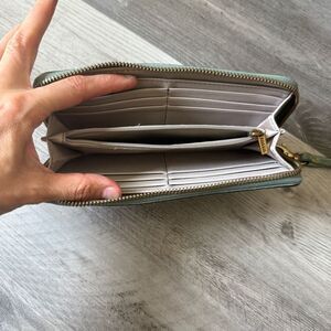 FOSSIL Leather Zip Around Wristlet Wallet Aqua Green Used
