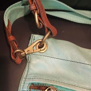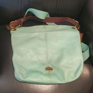 FOSSIL Leather Large Turquoise Crossbody Bag