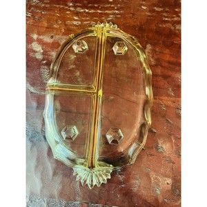 FOSTORIA BAROQUE #2496 TOPAZ 4 TOED 2 PART 7 7/8 RELISH DISH 1937-1942. Depression Glass, No Chips or Cracks, In Excellent Condition, Heavy , Please See Photos to Inspect Carefully Before Purchasing. I appreciate your interest in my item. Please know that shipping prices are high across the board right now due to inflation. I have selected the lowest shipping price that is appropriate for each item. New Items Listed Everyday, Thanks So Much For Viewing My Item!