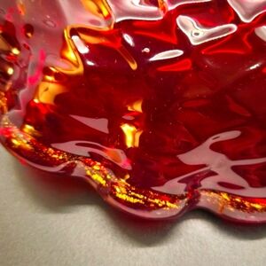 FOSTORIA? Ruby Red Bowl 11" Long x 8.5" Wide Footed Bowl W/Gold Flake and Foot.