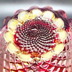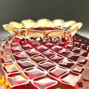 We are not totally sure of the maker of this gorgeous large ruby red footed Bowl. It's perfect for family gatherings, as a fruit bowl or a simple serving bowl, or just a gorgeous home decor piece. We are not sure of the year either. If I had to guess, I would say before Mid Century and after 1900. It surely is Vintage and it could possibly be depression era or close to it.