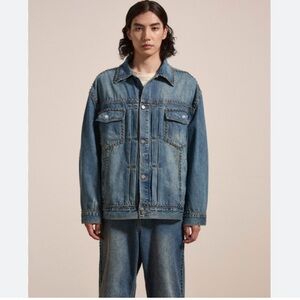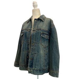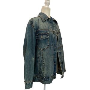 FOUND Company New York Silver-toned Metal Stud Oversized Denim Jean Jacket NWT