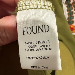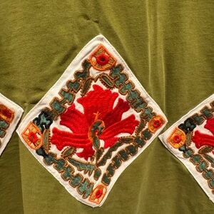 FOUND Casual Olive Short Sleeve Boho Embroidered Tee Size XL